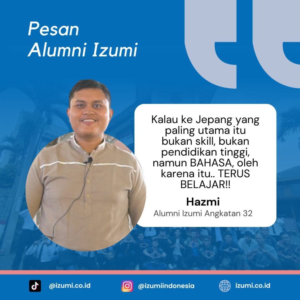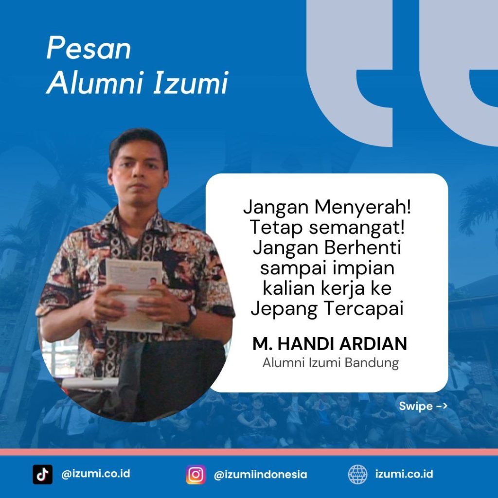Pesan dari M. Handi asal Lampung, alumni Izumi angkatan 22 yang sudah berhasil lolos Program Tokutei Ginou, penempatan Hiroshima