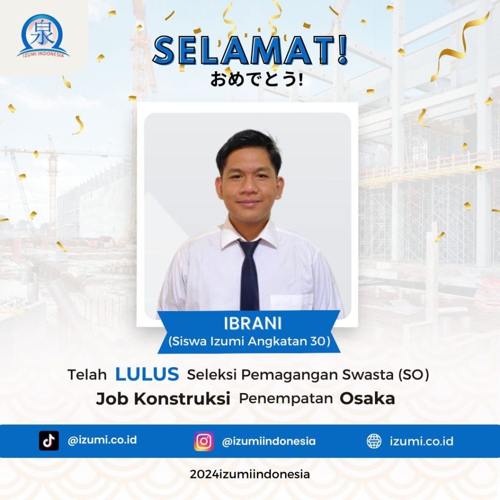 Pesan dari M. Handi asal Lampung, alumni Izumi angkatan 22 yang sudah berhasil lolos Program Tokutei Ginou, penempatan Hiroshima